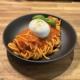 Handgemachte Spaghetti (aus Hartweizengrieß und Eiern aus Freilandhaltung), Olivenöl extra Vergine, junger Knoblauch, fermentierte Chiliflocken, frische Petersilie und Pecorino